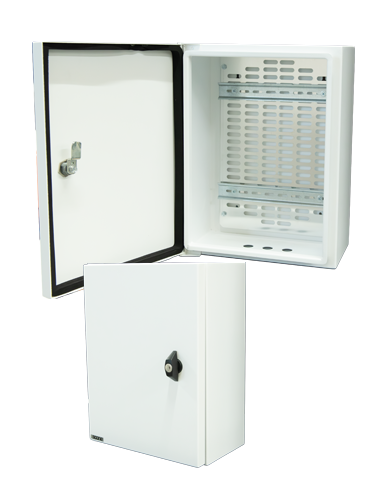 Le coffret extérieur CTE400 mesure 400 mm de haut par 300 mm de large pour une profondeur de 180 mm.